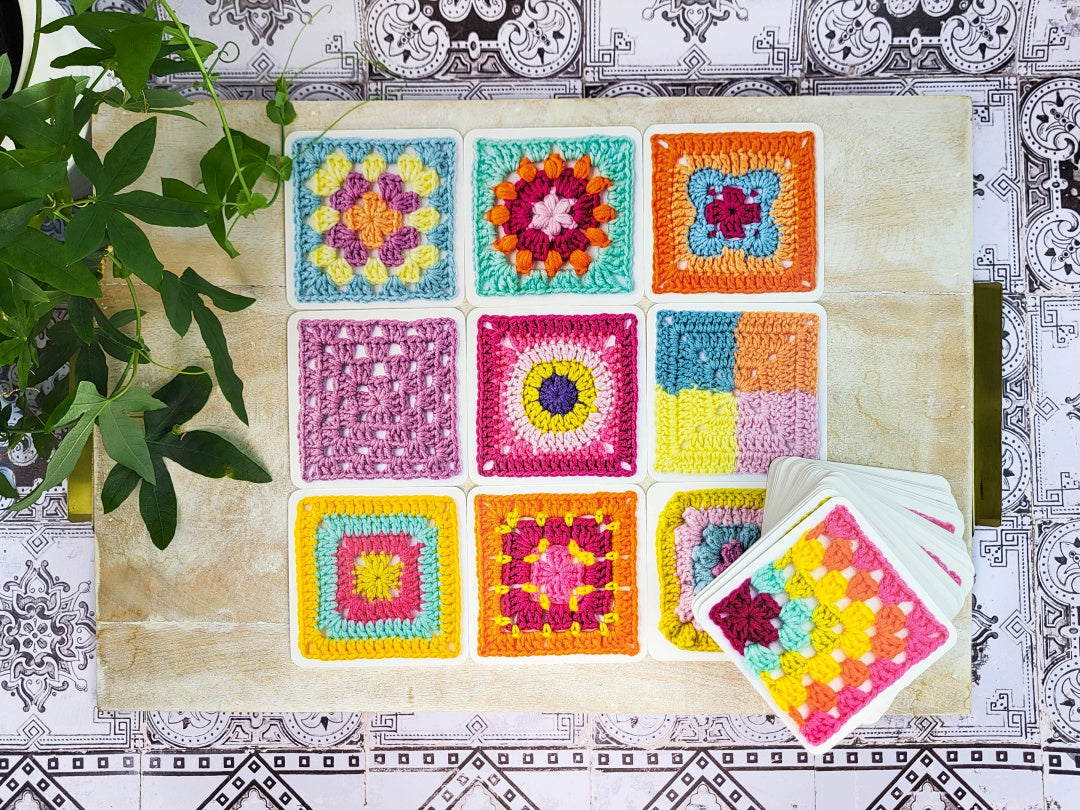Packed with color and creative flair, The Granny Square Card Deck is perfect for crocheters who love to mix, match, and make on the go!