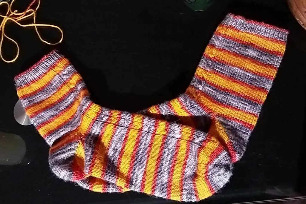 This hand-dyed sock yarn is made of 85% merino wool and 15% nylon.