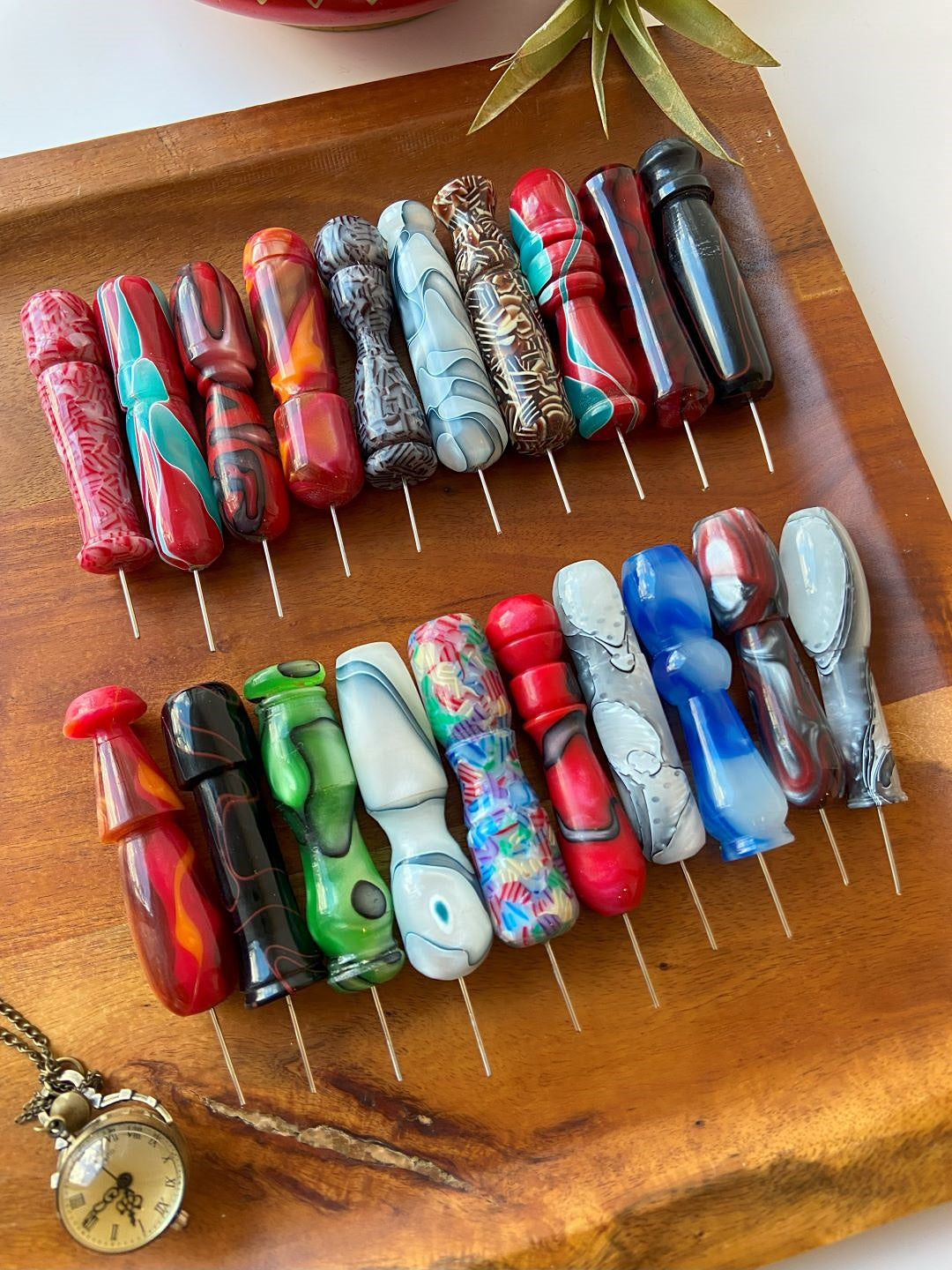 Each piece is unique in design and colorĀ š„Ā When you order this tightening key, you'll receive a unique model with a protector end cap that will make the knitters you know blush with envy!Ā Upgrade yourĀ interchangeable needles kit today and see the difference for yourself!