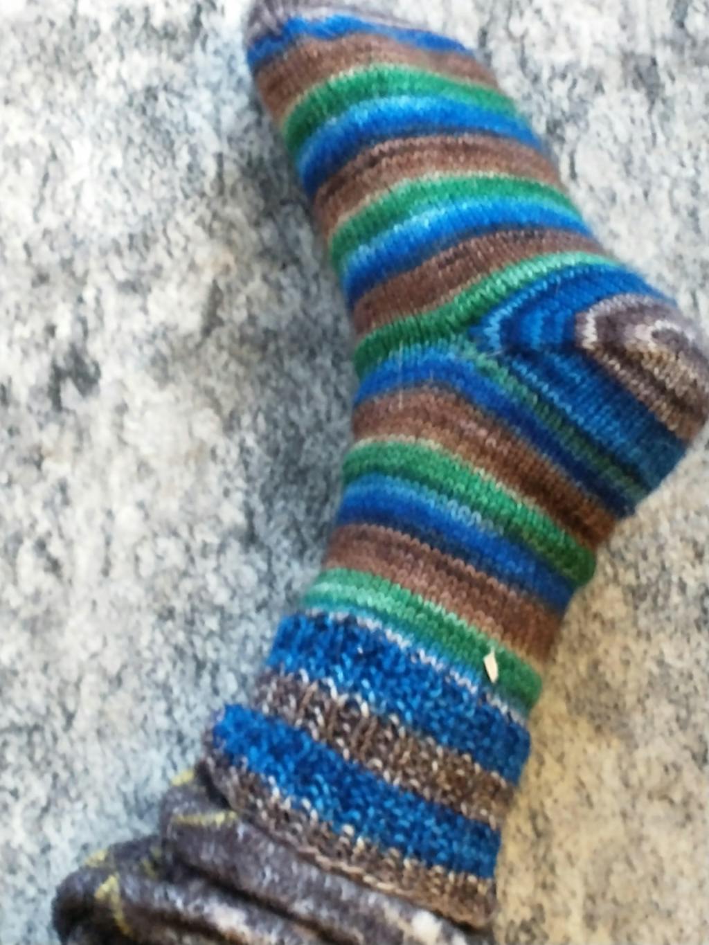 This hand-dyed self-striping sock yarn is made of 85% merino wool and 15% nylon.