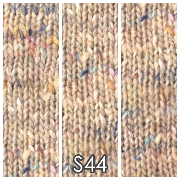 This yarn is a DK weight 40% Wool, 25% Silk, 25% Nylon, 10% Mohair blend. This popular, versatile yarn is an excellent choice for knitting and crochet projects ranging from socks, to sweaters, to hats - in semi-solid, tweedy colors! A great complement to Silk Garden Sock yarn