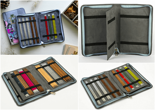 Stores up to 16 sets of double pointed needles (5 needles to a set)