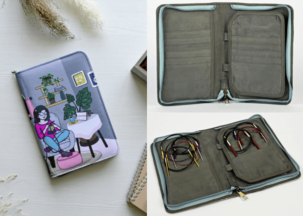 Zippered needle case, can store up to 22 pairs of fixed circular needles