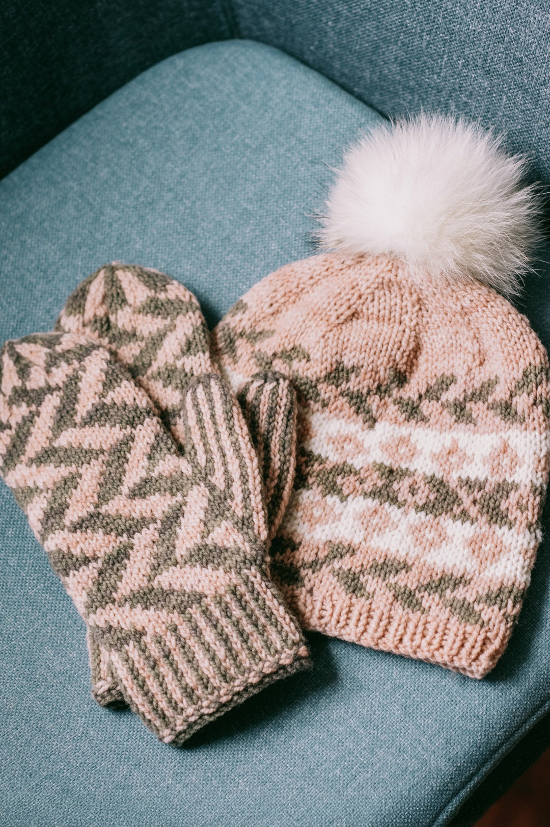 You will have enough yarn left over to knit a matching pair of mittens. Louise> wrote a pattern with this exact same yarn (shown in the pictures) that is suitable, and it’s FREE! Find it HERE! ⬅️