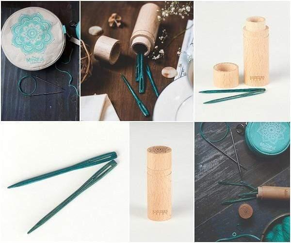 Knitter's Pride 'The Mindful Collection' Teal Wooden Darning Needles in Beech Wood Container