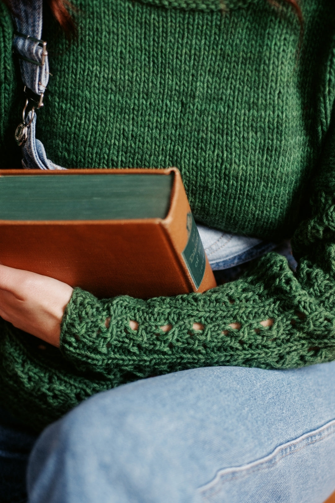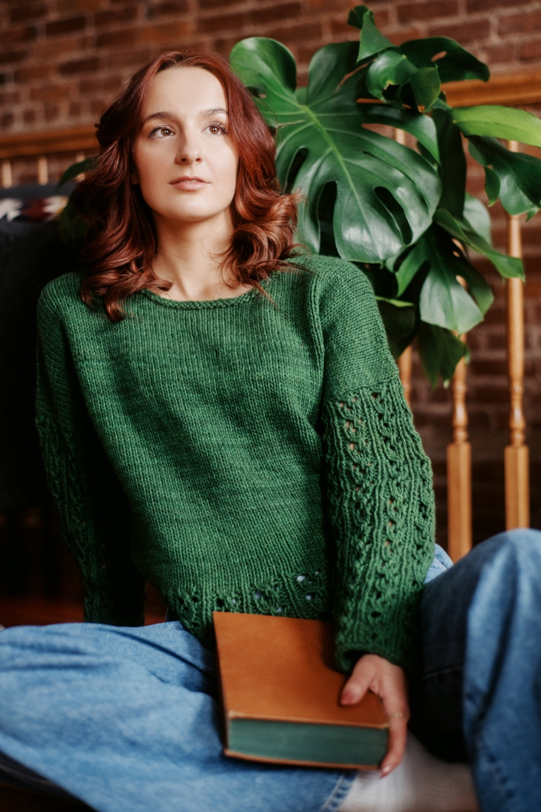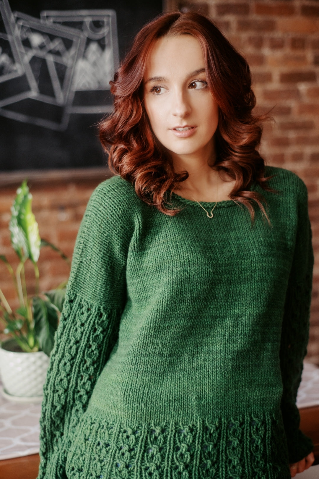 Introducing the stunning Essex sweater pattern by Donna Estin! This beautifully design perfectly reflects the rich and lush character of its deep evergreen hue, reminiscent of the vibrant landscapes of Essex.