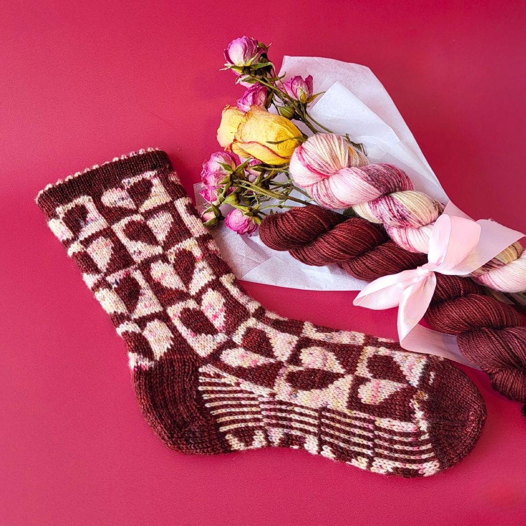 We are delighted to introduce the Aphrodite Socks, designed by Louise Robert especially for Valentine’s Day. For this special occasion, this project is also available as a limited-edition yarn kit ! šŸ’Œ