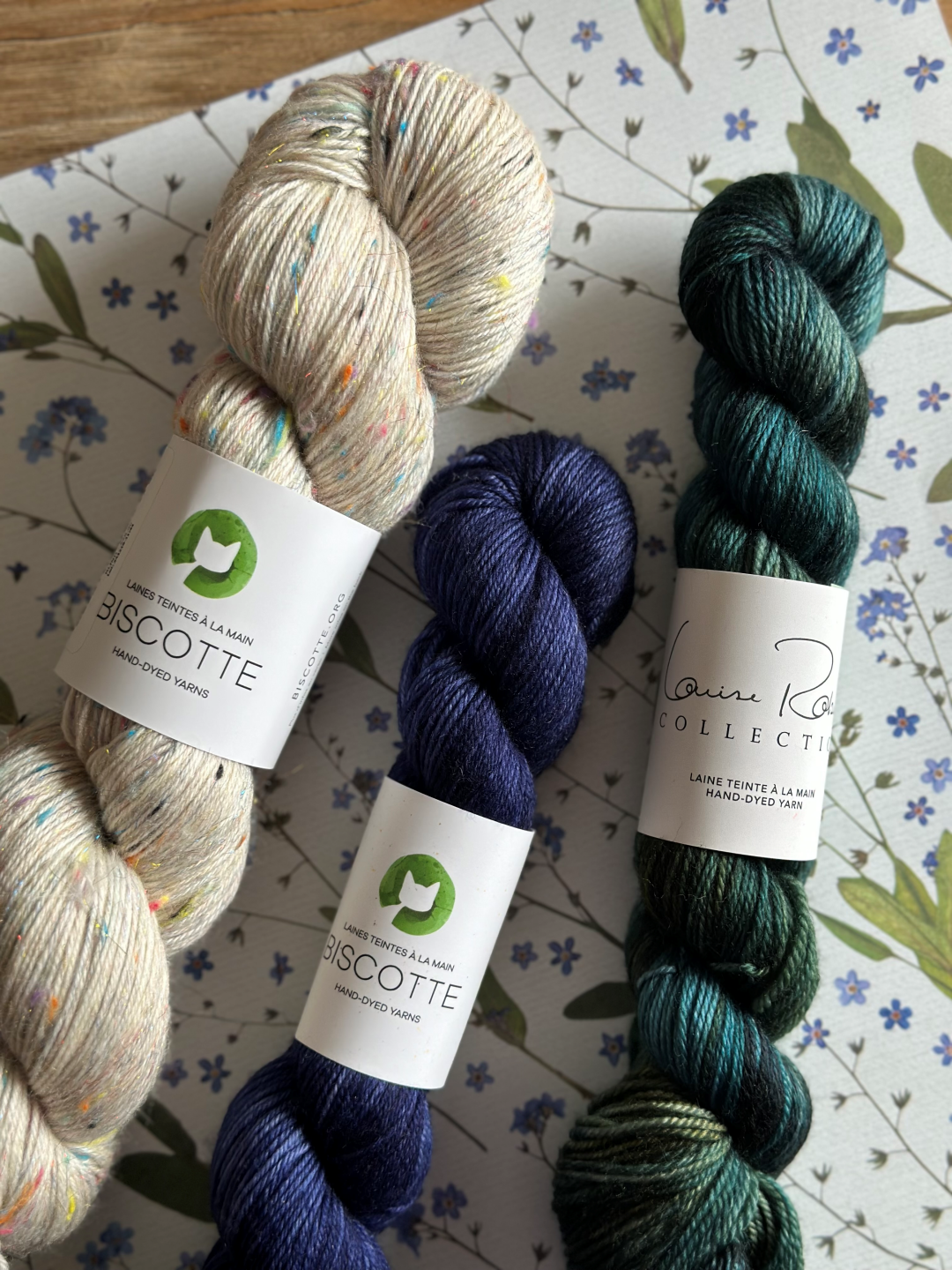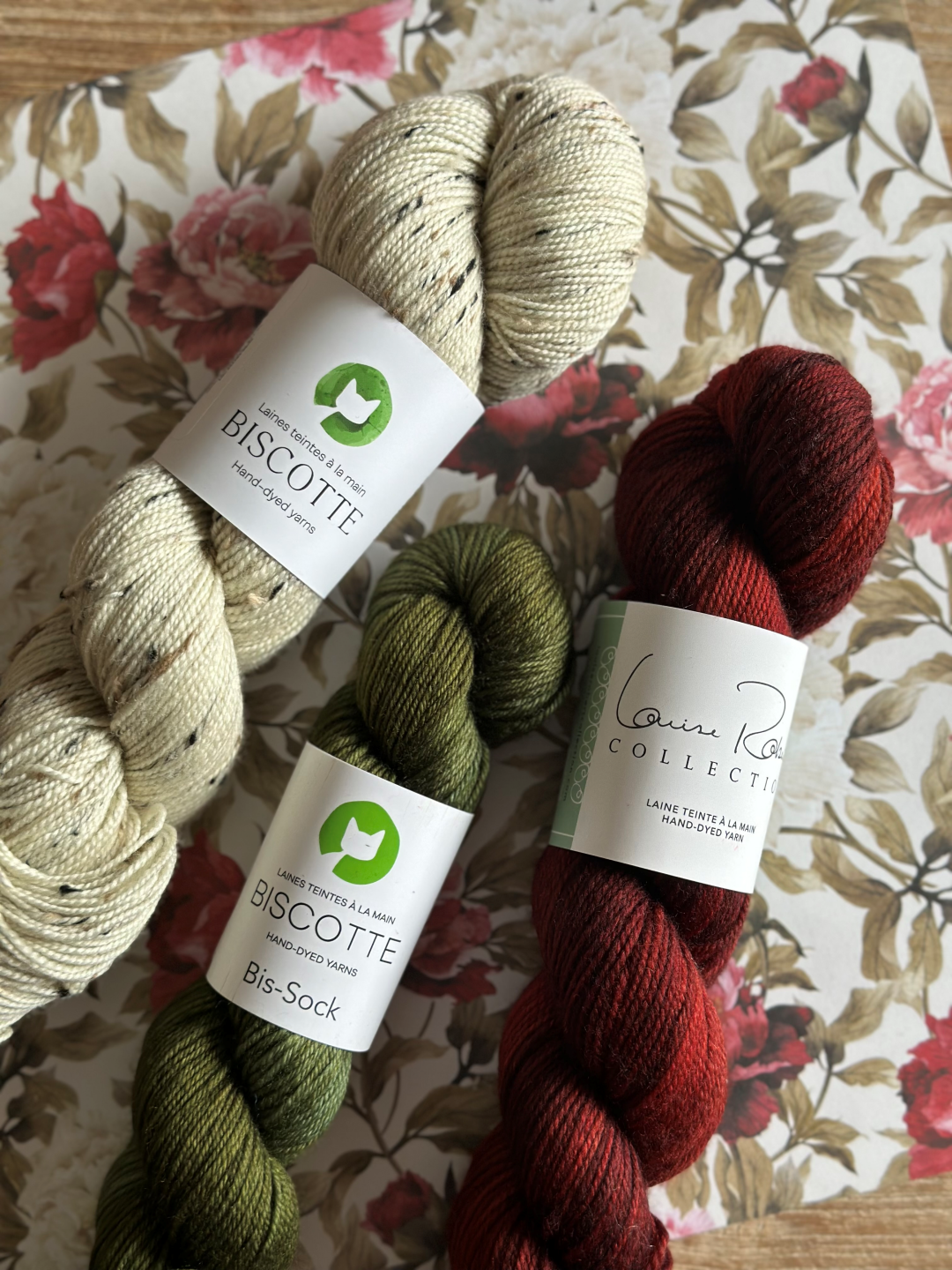 To my amazement, it bursts into life each spring and grows throughout the summer, gracing me with magnificent, majestic flowers that bloom in autumn. This larger-than-life flower has left an indelible impression on me. Therefore, for the September Biscotte Mystery Sock Club, I've decided to pay homage to the hibiscus in all its splendour! - Louise Robert ♡