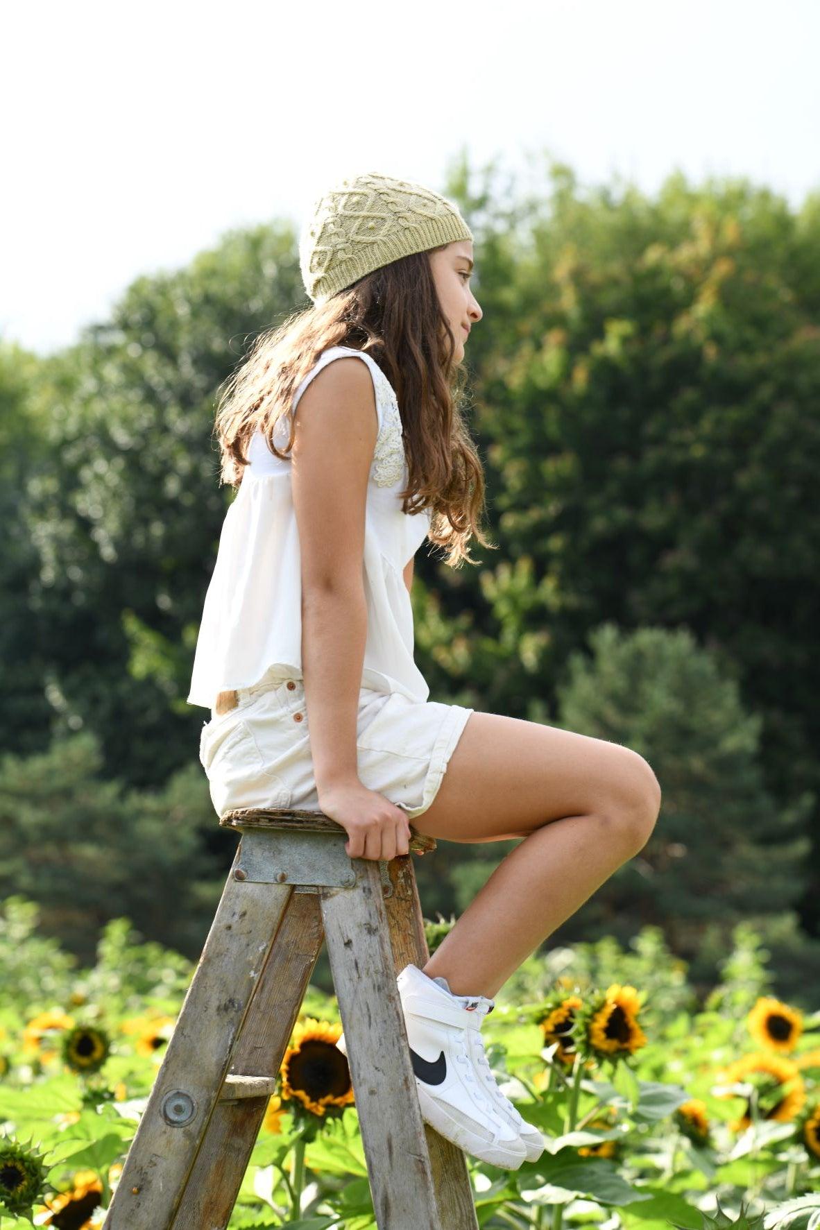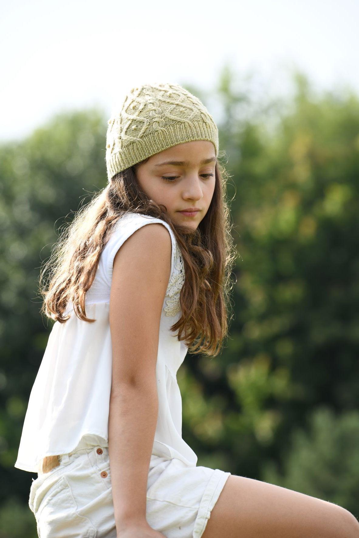 The Echinoidea by Lauren Rad Hat is knit from the brim up using a tubular cast on. At the crown, the cables decrease into a star shape. This hat is graded for three sizes but can easily be sized up or down by adding or removing one repeat of stitches.