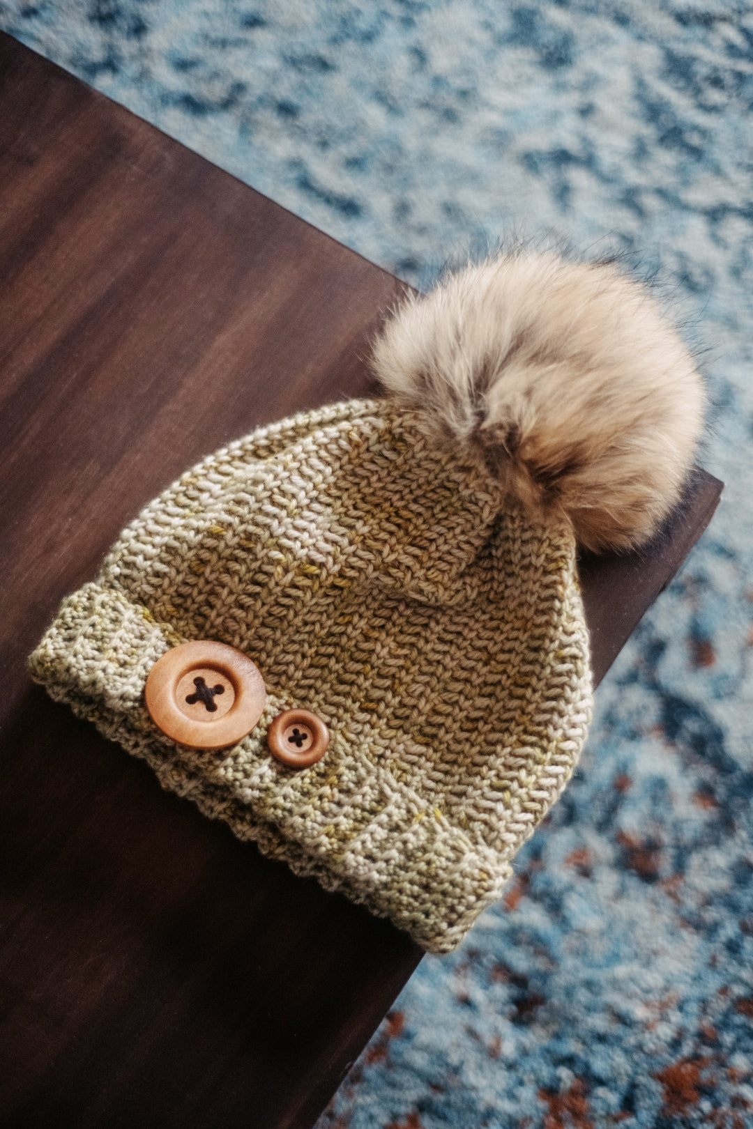 The buttons and the pompon are not included in this kit, as not everyone prefers them. However, you can shop Louise Robert selection for this set at your convenience for buttons HERE and for pompons HERE.