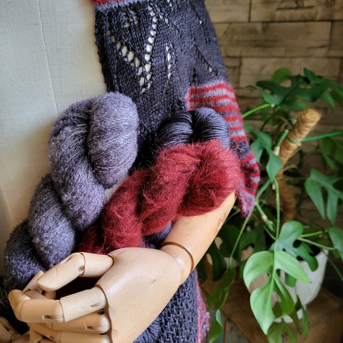 - LOUISE ROBERT COLLECTION - SUPER SOCK [75% merino wool sw, 25% nylon; 400m per 100g] - 1 SKEIN - shown in Hibiscus for Kit 1, Charlie for kit 2, Multivers for kit 3 and Mouton Noir for the red version.