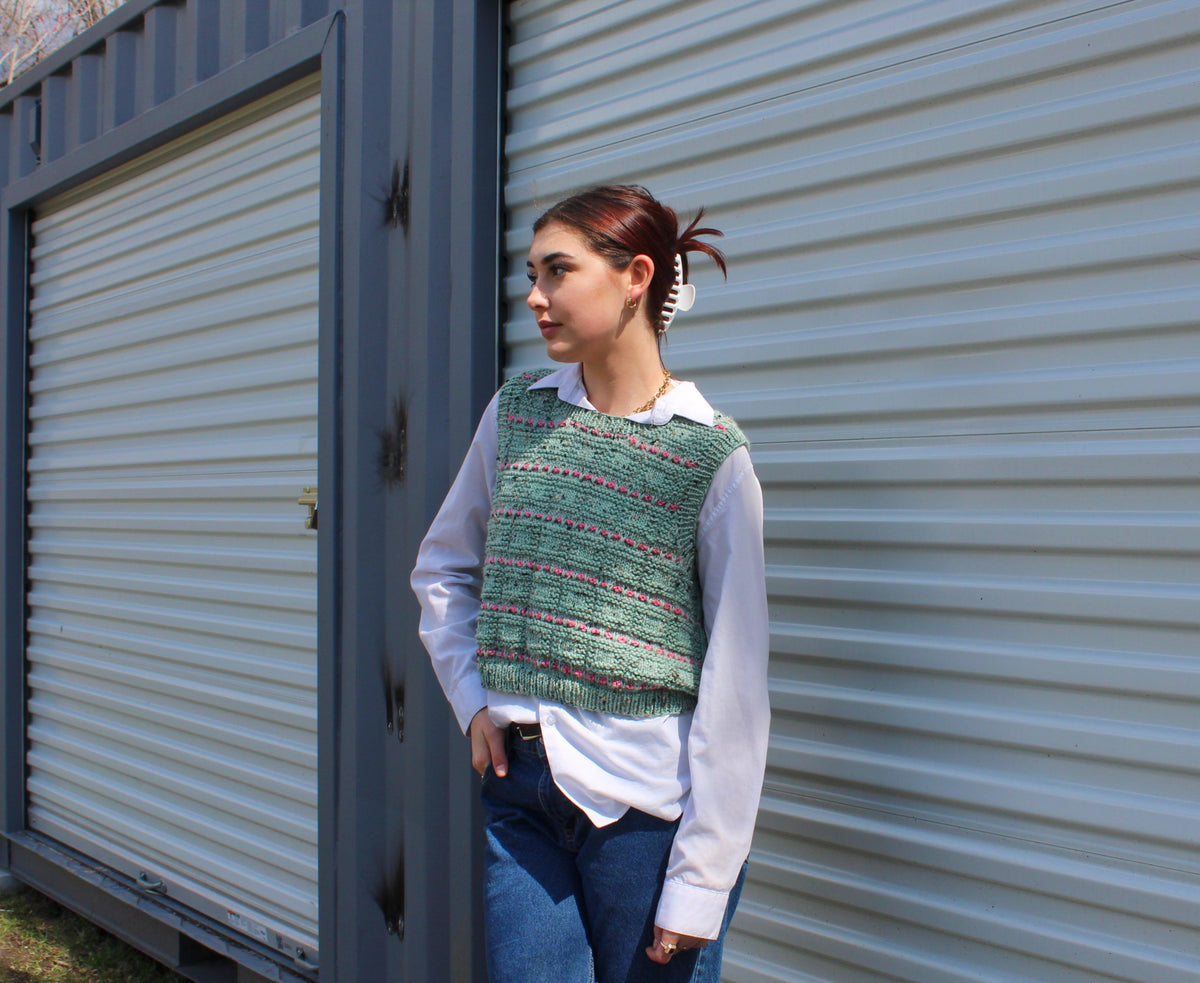 The Festive Biscuit Vest by Nadya Stalling is a pretty design that combines a simple two-color mosaic and