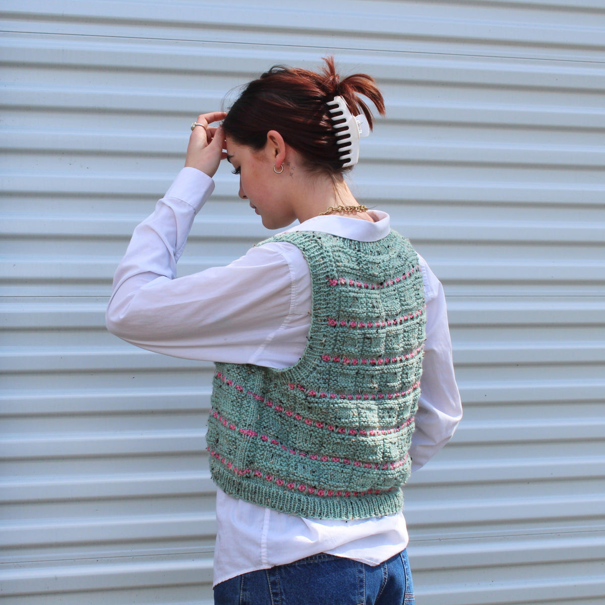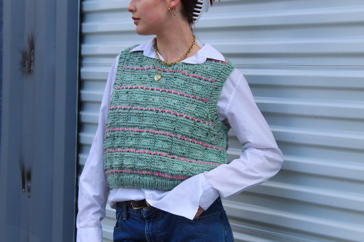 The Festive Biscuit Vest by Nadya Stalling is a pretty design that combines a simple two-color mosaic and