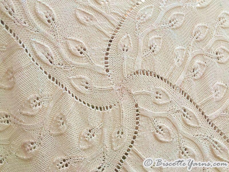 Most of the time when I work on a knitting design I am inspired by a yarn colorway. With this blanket, I was thinking about something light and leafy, with leaves that were growing all around.