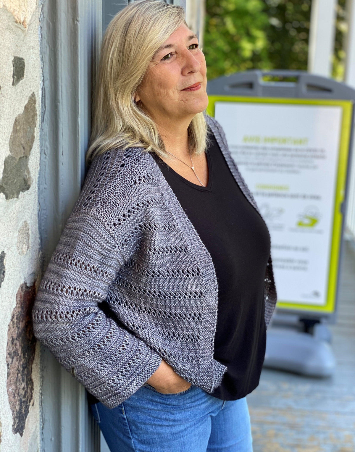 In addition to the pattern, you will need the following materials to knit the Evening Promenade cardigan: