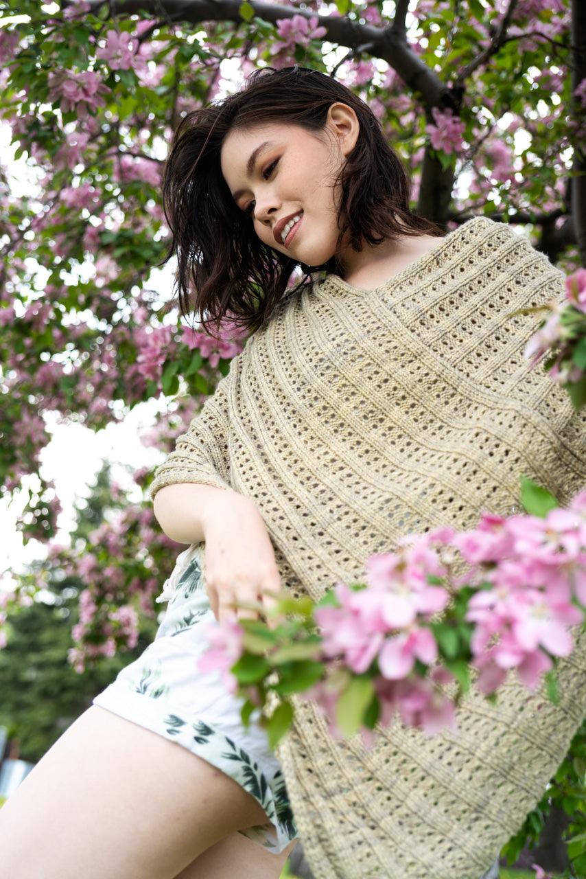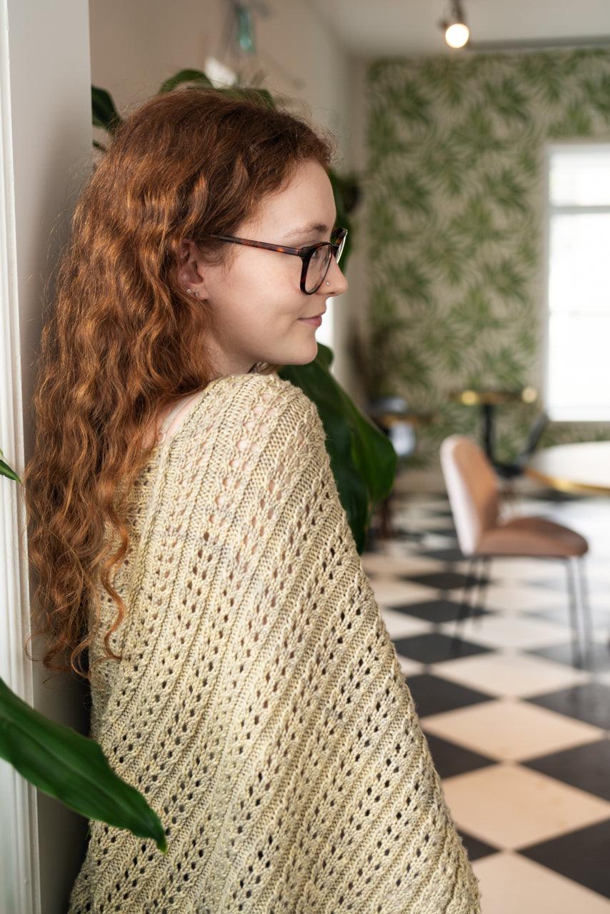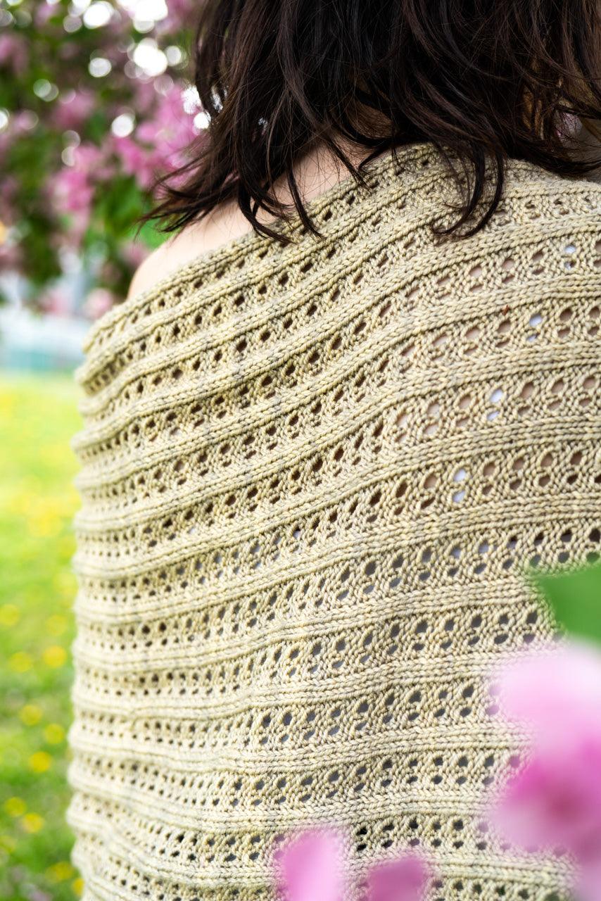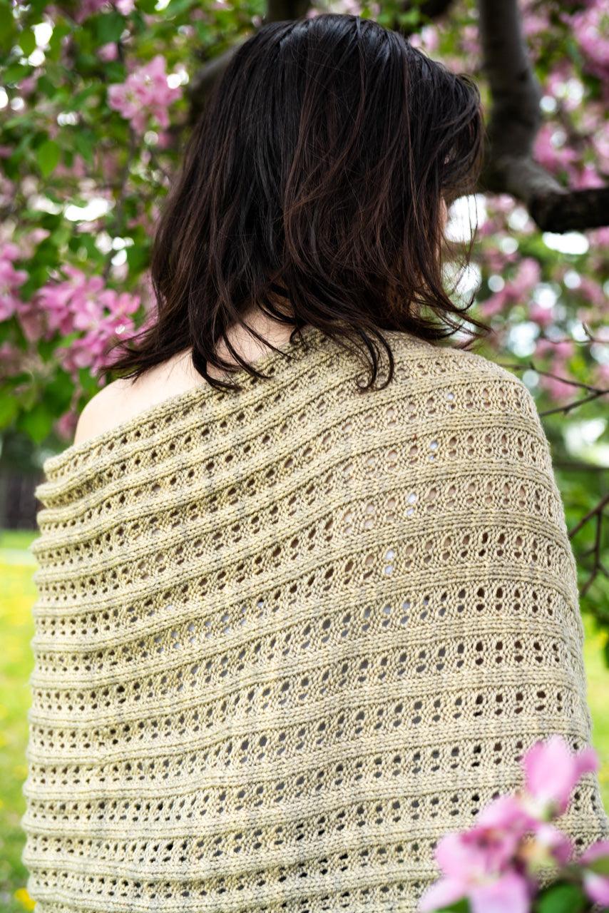 This poncho is a very simple knit with just a four-row pattern repeat (with only one row that requires more attention) so it’s perfect for a relaxing knit. Worked in Merino Worsted yarn from the Louise Robert Collection, it’s a pleasure to knit such a soft and lovely yarn. The poncho also features a simple 3-stitch Icord edging and, when complete the bind-off edge is sewn to the side to create the poncho shape (or, for the wrap, left open and unseamed).