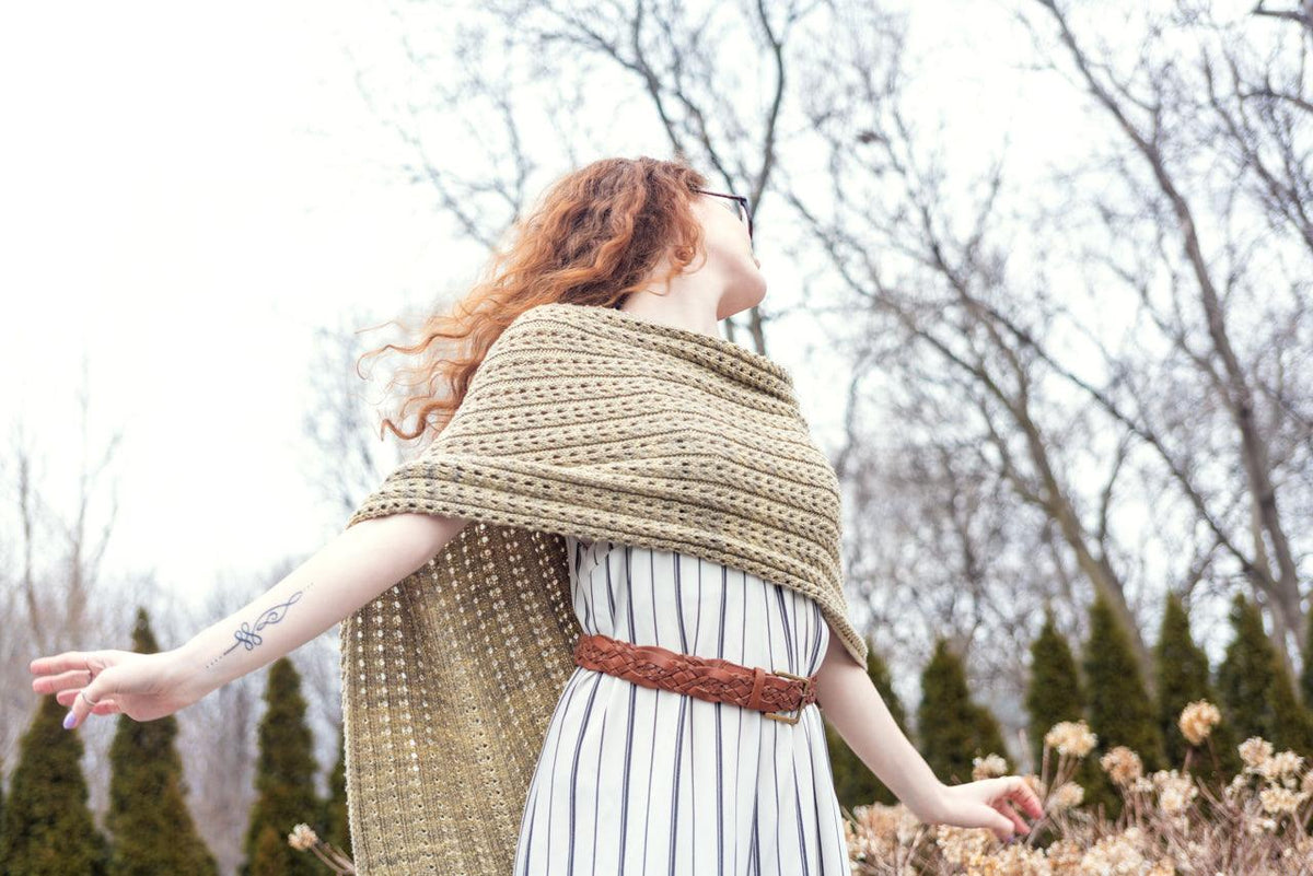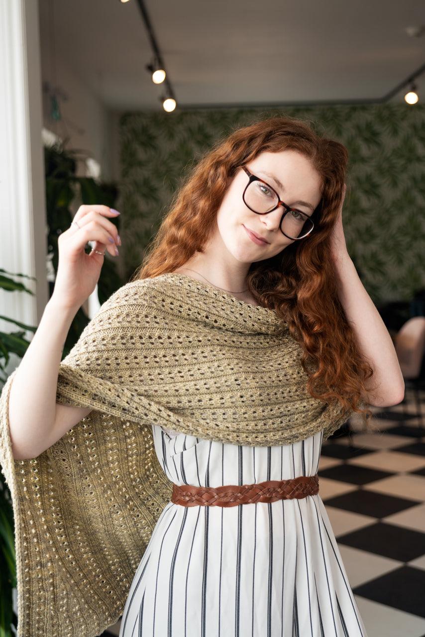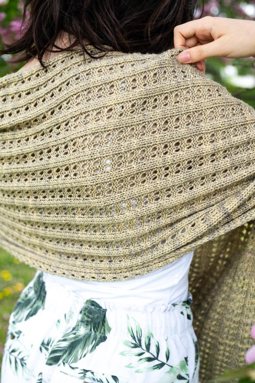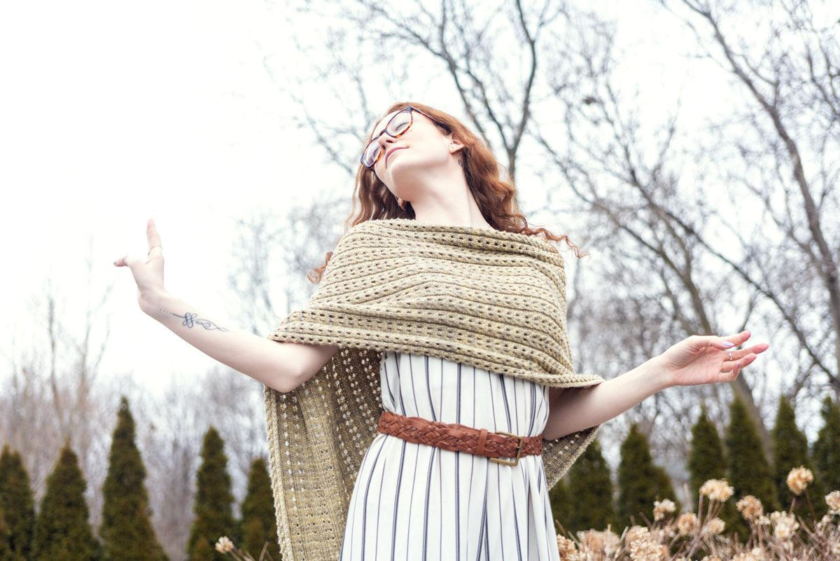 This poncho is a very simple knit with just a four-row pattern repeat (with only one row that requires more attention) so it’s perfect for a relaxing knit. Worked in Merino Worsted yarn from the Louise Robert Collection, it’s a pleasure to knit such a soft and lovely yarn. The poncho also features a simple 3-stitch Icord edging and, when complete the bind-off edge is sewn to the side to create the poncho shape (or, for the wrap, left open and unseamed).