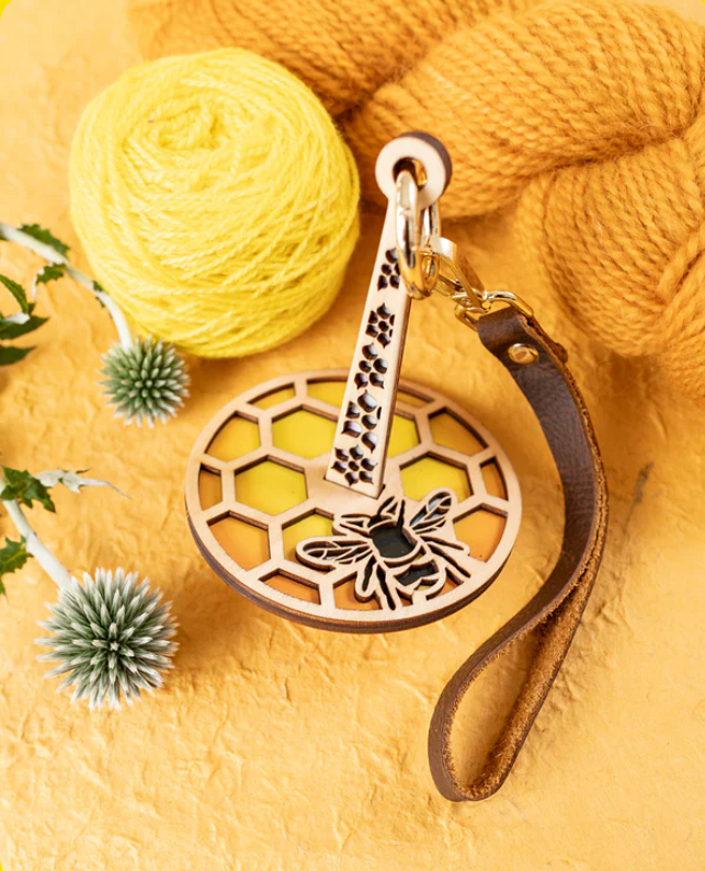 The Mini Minder by Lemonwood is the ultimate companion for every knitting and crochet enthusiast. Slip the yarn cake or ball on the spindle, put the handle around your wrist, and you can knit to your heart's content wherever you go!