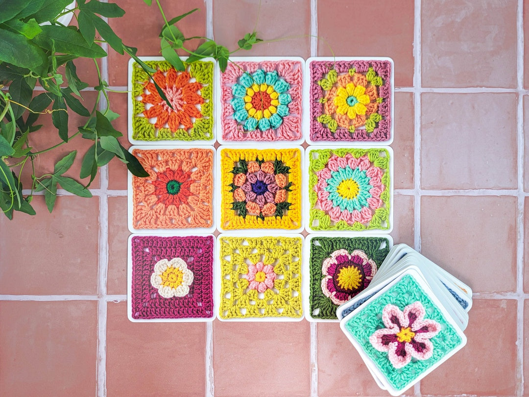 - 50 Colorful cards of 10 x 10cm (4 x 4in), each with a fabulous floral granny square to make, mix and match.