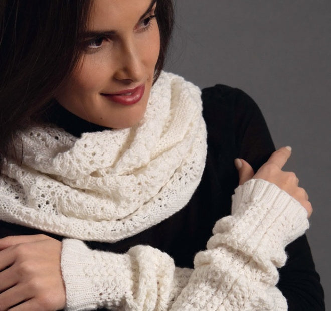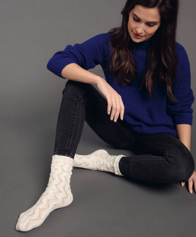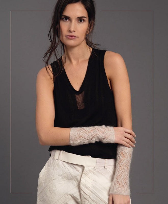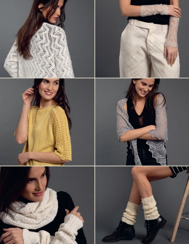 Elle décline ce style si particulier sur différents modèles à tricoter, tous d’une élégance et d’une délicatesse rares :