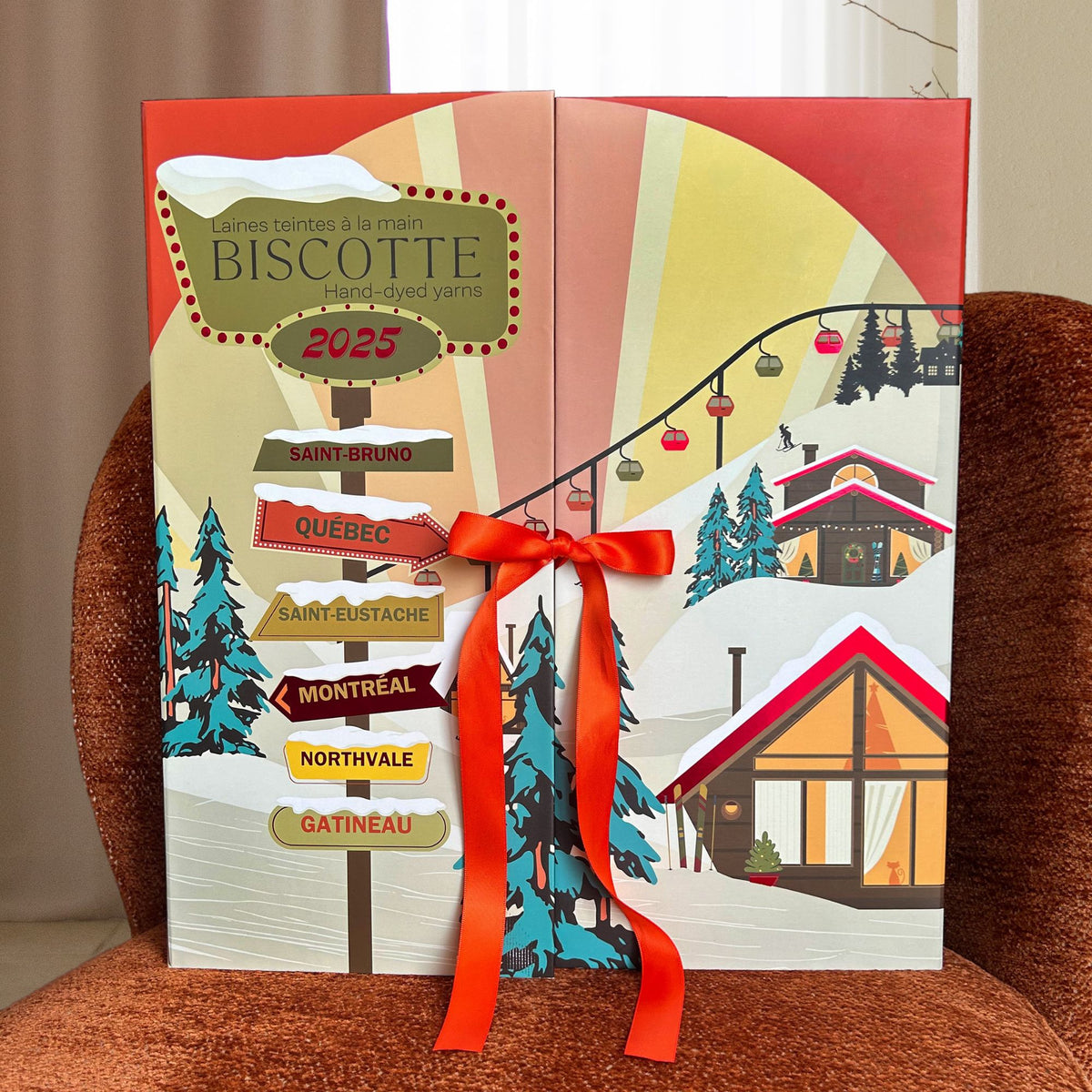 - The calendars will be shipped starting November 1, 2025, or sooner if possible. You can also pre-order for pick up from your local Biscotte Yarns store.
