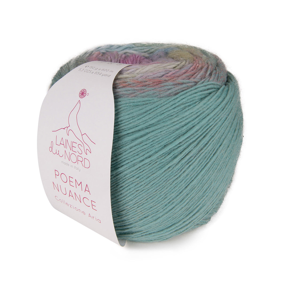 Discover the magnificent Poema Nuance yarn from LAINES du NORD. This yarn offers you a collection of 6 magnificent gradient colors!